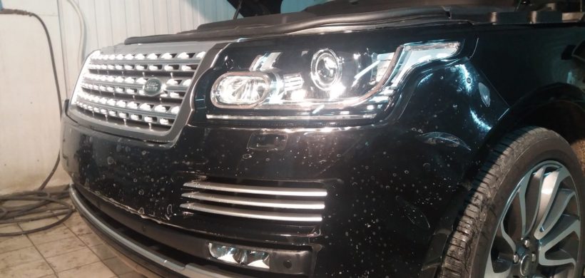 Новый Range Rover прямо с салона, приехал к нам на антигравийную защиту пленкой 3M venture shield.